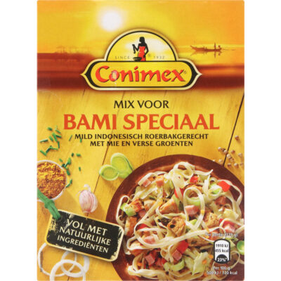 Conimex Mix Bami Speciaal is dé kruidenmix voor een authentieke en smaakvolle bami speciaal. Met een perfecte combinatie van Conimex kruiden en specerijen creëer je eenvoudig een heerlijk geurende en smaakvolle maaltijd. Geniet van de rijke en karakteristieke smaken van de Indonesische keuken in jouw eigen keuken.