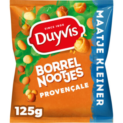 Ontdek de heerlijke Provençaalse smaak van Duyvis Borrelnootjes Provencale. Deze knapperige en smaakvol gekruide nootjes nemen je mee naar de zonovergoten Provence. Geniet van de combinatie van mediterrane kruiden en specerijen voor een verfijnde en hartige smaakervaring. Een onmisbare snack voor elke borrel of gezellig samenzijn.