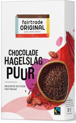 Fairtrade Original Hagelslag Puur is een heerlijke traktatie voor chocoladeliefhebbers. Gemaakt van pure chocolade met een volle smaak en een knapperige textuur. Strooi deze smakelijke Fairtrade Original Hagelslag Puur over je boterham, croissant of pannenkoeken en geniet van de pure verwennerij. Een eerlijk en duurzaam genot om je dag mee te beginnen.