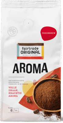 Fairtrade Original Koffie Aroma Freshbrew is een heerlijke melange van koffiebonen met een vol en rond karakter. Deze Fairtrade Original Koffie Aroma Freshbrew is speciaal ontwikkeld voor gebruik in filterkoffiemachines en zorgt voor een verfijnde smaak en aroma. Geniet van een heerlijk kopje koffie en steun tegelijkertijd eerlijke handel.