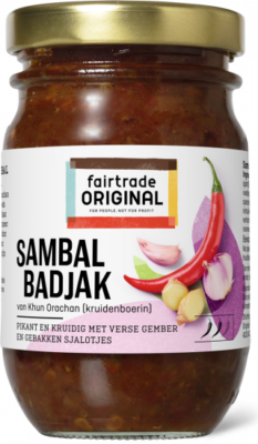 Fairtrade Original Sambal Badjak is een smaakvolle Indonesische sambal gemaakt van geroosterde uien en kruiden. Met zijn rijke en pittige smaak voegt deze Fairtrade Original Sambal Badjak een heerlijke kick toe aan gerechten. Perfect als smaakmaker in soepen, sauzen, rijstgerechten en meer. Een must-have voor liefhebbers van pittig eten.
