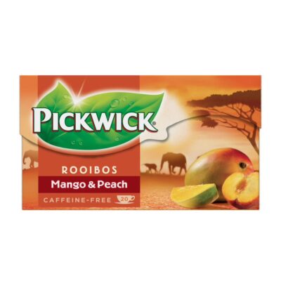 Geniet van de tropische verwennerij van Pickwick Rooibos Mango Perzik. Deze cafeïnevrije infusie combineert de natuurlijke zachtheid van rooibos met de zoete en sappige smaken van mango en perzik. Laat je betoveren door de exotische aroma’s en geniet van een moment van pure ontspanning en genot.