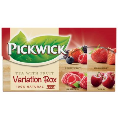 Ontdek de warme en uitnodigende smaken van het Pickwick Variatiedoosje Rood. Dit assortiment biedt een selectie van rijke en aromatische zwarte theeën, perfect om je dagelijkse theebeleving te verrijken. Geniet van de heerlijke variatie en laat je verwennen door de karaktervolle smaken in dit doosje.