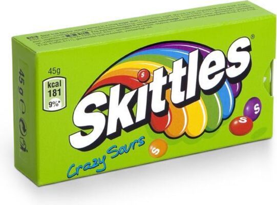 Skittles Crazy Sours Doosjes zijn de perfecte keuze voor liefhebbers van zure snoepjes. Elk doosje Skittles Crazy Sours zit vol met kleurrijke en zure snoepjes in verschillende smaken, zoals appel, bes, sinaasappel, citroen en aardbei. Laat je smaakpapillen tintelen en ervaar de intense zure smaakexplosie van Skittles Crazy Sours. Een onweerstaanbare traktatie.