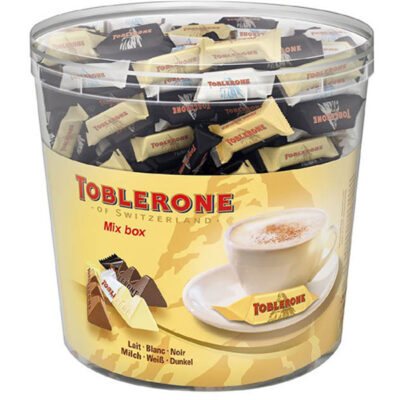 De Toblerone Mixbox Horeca is een heerlijke verzameling van verschillende Toblerone chocoladerepen, perfect voor de horeca. Geniet van de iconische melkchocolade de chocolade variant en de verrassende witte chocolade met honing en amandel. Toblerone Mixbox Horeca is een smaakvolle traktatie voor liefhebbers van Zwitserse chocolade.