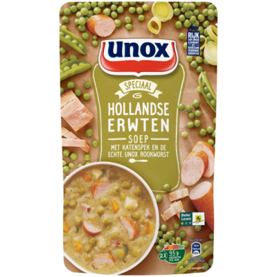Unox Soep Erwt is een smaakvolle en voedzame erwtensoep met een heerlijke textuur. Geniet van de rijke smaak van zorgvuldig geselecteerde erwten, gecombineerd met groenten en kruiden. Deze klassieke soep biedt een hartverwarmende en vullende maaltijd, perfect voor liefhebbers van traditionele erwtensoep.