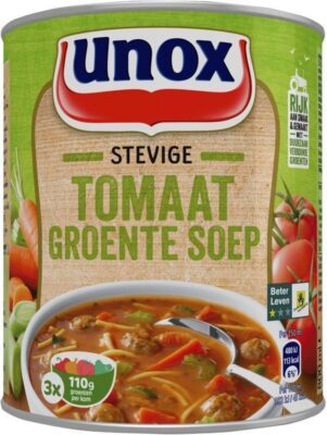 Unox Soep Stevige Groente is een smaakvolle en voedzame soep boordevol verschillende groenten. Geniet van de stevige textuur en de smaakvolle combinatie van groenten en kruiden. Deze heerlijke soep is een gezonde keuze voor een snelle en voedzame maaltijd. Perfect voor liefhebbers van groentesoep!